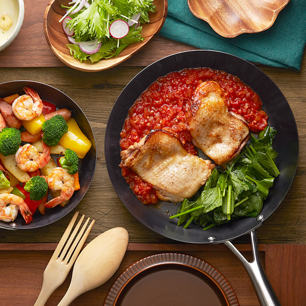 窒化(氮化)是一種將氮氣 (Nitrogen) 注入鐵煎鍋鍋體中,使表面硬化並使其強度更高的加工方法。由於它不像普通塗層煎鍋那樣塗抹在表面,因此無需擔心它會剝落。