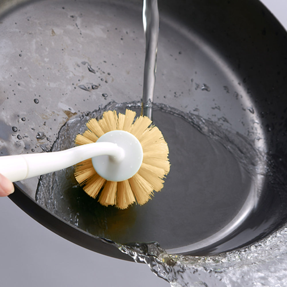 將煎鍋中的水煮沸後,稍等片刻,當燒焦的碎片稍微鬆動時,用刷子或稍硬的海綿擦洗。