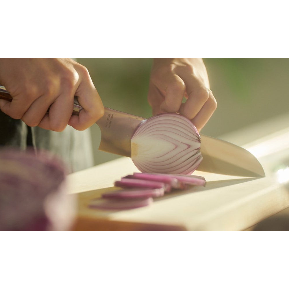 日本【和 NAGOMI】三德廚刀,適合切肉、魚、蔬菜,是廚房中不能或缺的多功能廚刀。日本【和 NAGOMI】廚刀均由擁有多年經驗的熟練工匠精心手工製作而成,刀身採用440A鉬鋼精鑄打造,防鏽力佳,容易打磨。