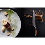 ✅ 刀柄使用層壓強化木上鑲嵌不鏽鋼,木紋飾面富有質感又耐看