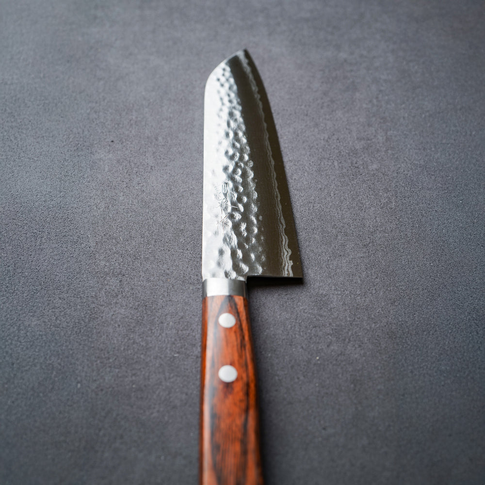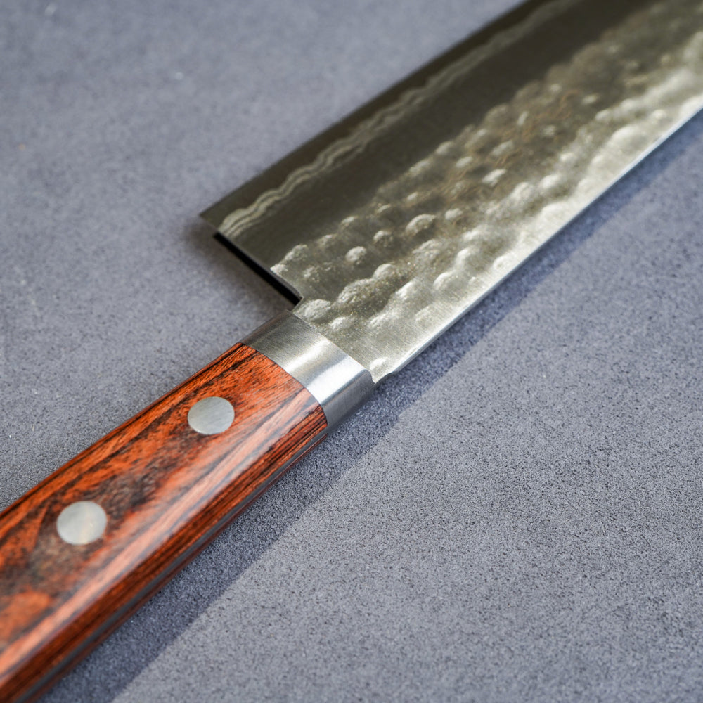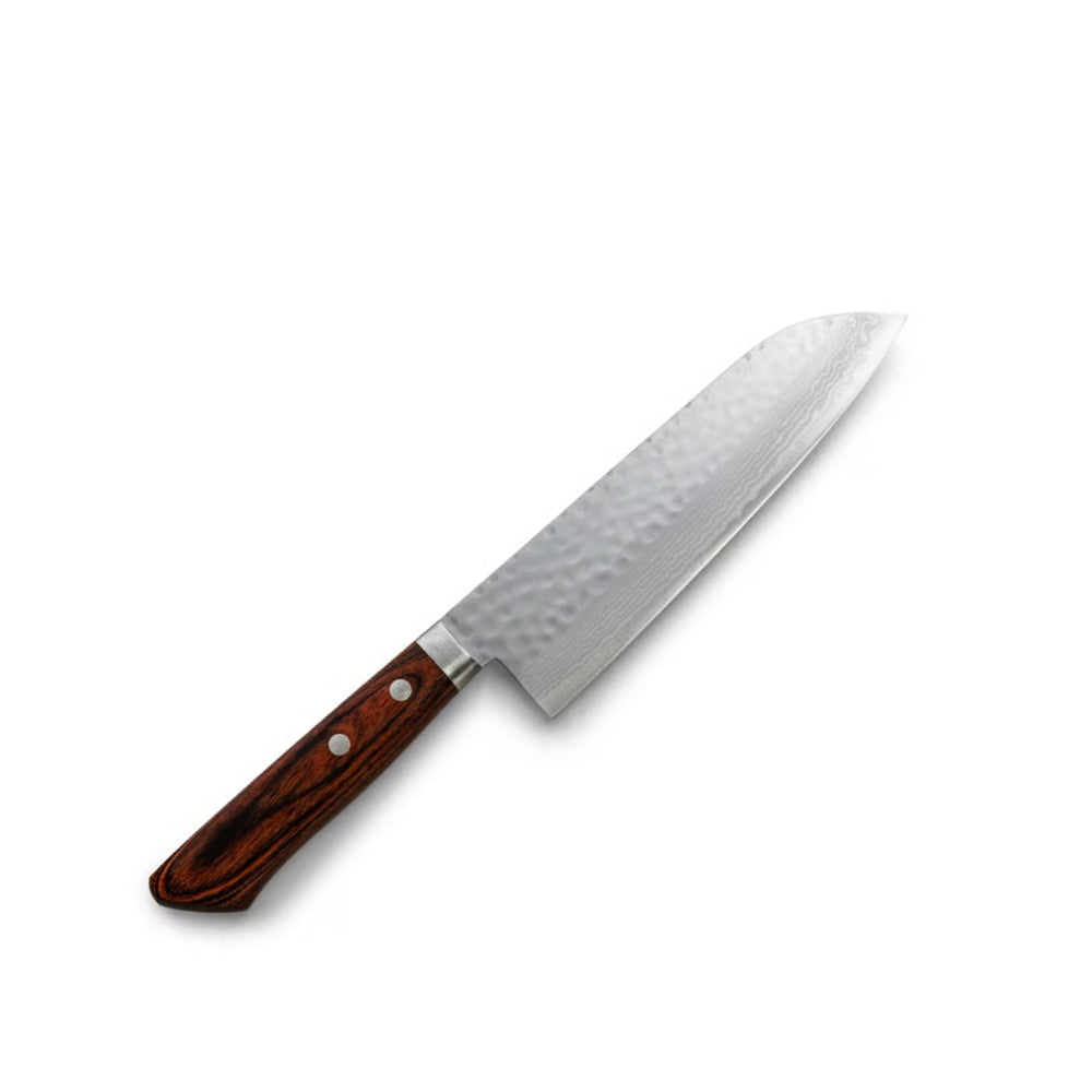 日本 增谷刃物 訓平作 VG10鋼 槌目大馬士革紋 刻流 桃花芯木柄 三德刀 170mm