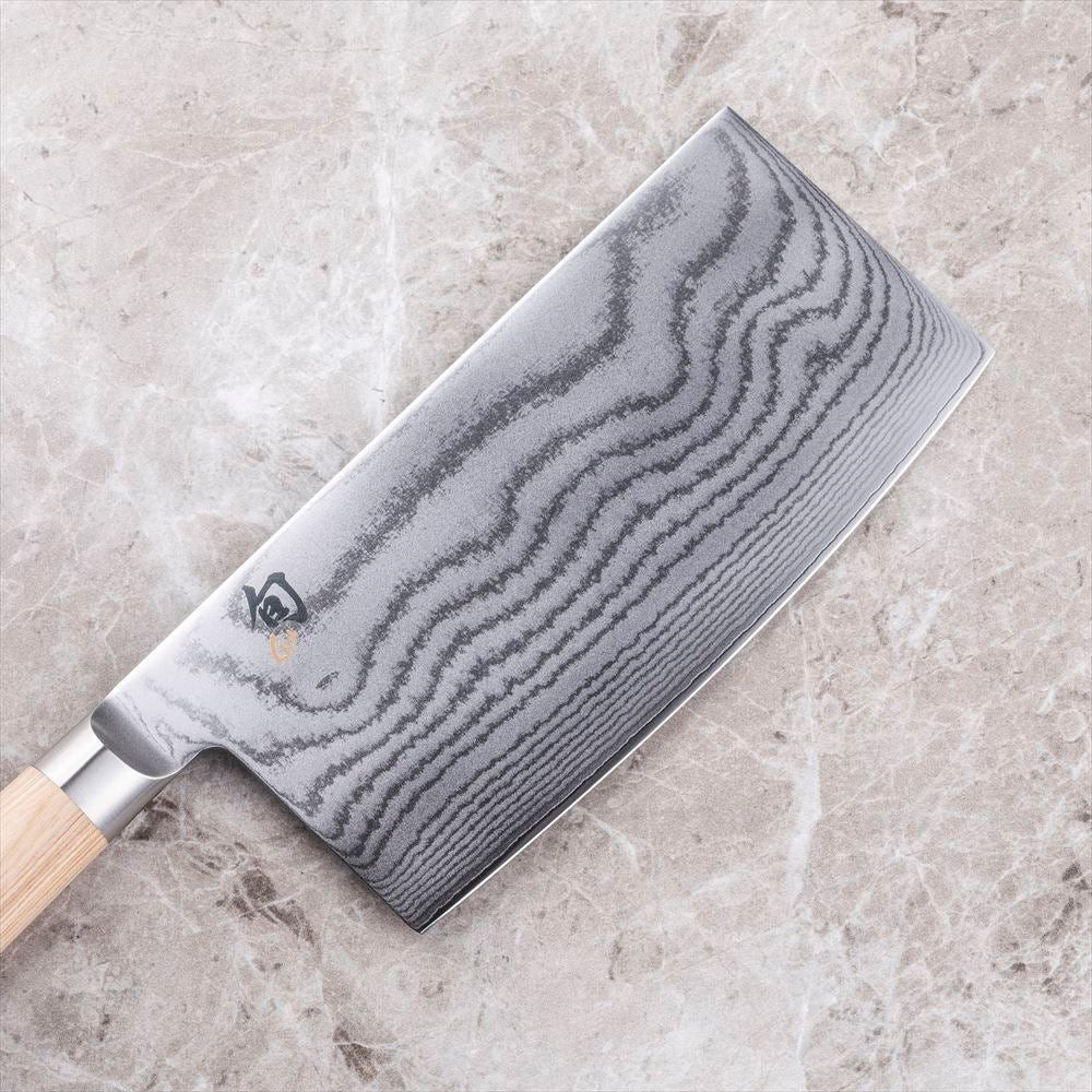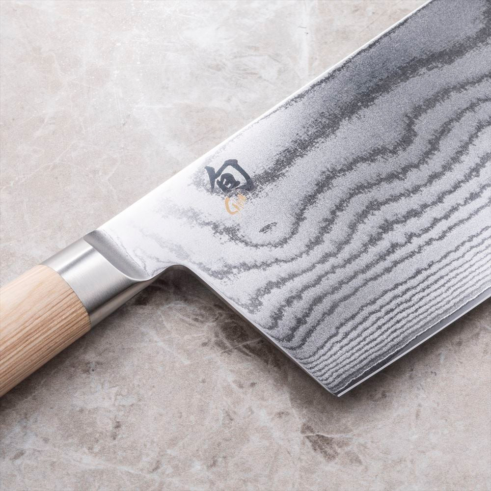 【旬】為日本貝印刀具最高級別的系列。【旬】Classic Blonde系列VG-MAX 33層大馬士革紋中華片刀,以旬獨有的VG-MAX不鏽鋼作為芯鋼,硬度高、耐用、耐酸,不易生鏽。刀刃以極薄雙邊16度開鋒刀刃,切割感佳。手柄採用D型積層強化木設計,貼服防跣,更富握感。