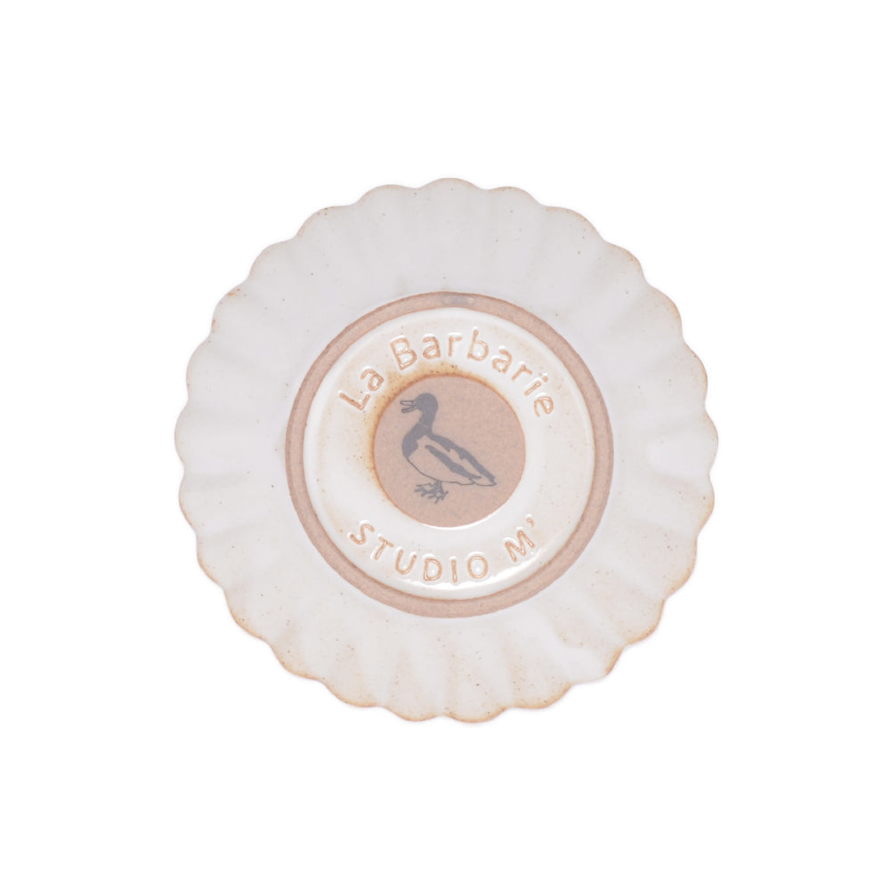 「Barbarie」是一種鴨子,因此這款盤子的背面印有鴨子的圖案。這款盤子是為了享用美味鴨肉料理而設計的,但也適合其他肉類料理,如薑燒豬肉、漢堡排和唐揚炸雞。Barbarie盤有四種尺寸,包括主餐碟、麵包碟、點心碟和小碟。花瓣形的浮雕設計讓盤子更具魅力,無論擺放什麼料理,都能讓食物看起來更美味。