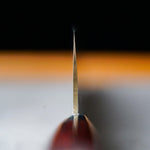 日本堺孝行 VG10 33層槌目大馬士革紋三德廚刀,以VG10不鏽鋼作為芯鋼,防鏽效果佳、易磨。刀身經槌目處理,處理食材時可減少沾刀。刀柄部分採用桃花心合成木,感覺優雅。