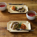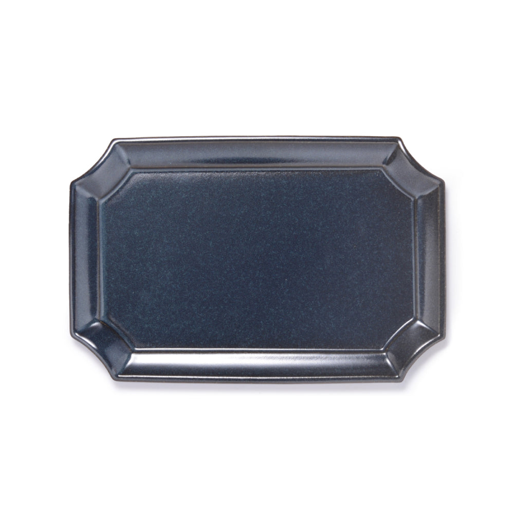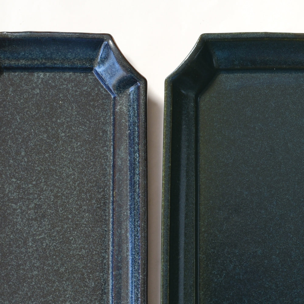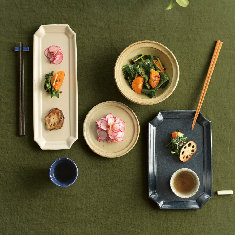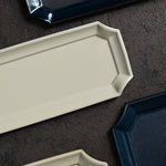「Border角皿」是為了讓魚料理更加美味而設計的,提供31cm和24cm兩種尺寸。31cm長身角皿適合盛裝整隻秋刀魚,而24cm寬身角皿則適合剖開的竹莢魚。這款角皿不僅適合烤魚,還可以用來擺放飯糰、配菜、點心或小蛋糕等。其設計概念是「將擺盤料理裱框」,提供白色和靛藍兩種顏色,並具有便於堆疊的特色。